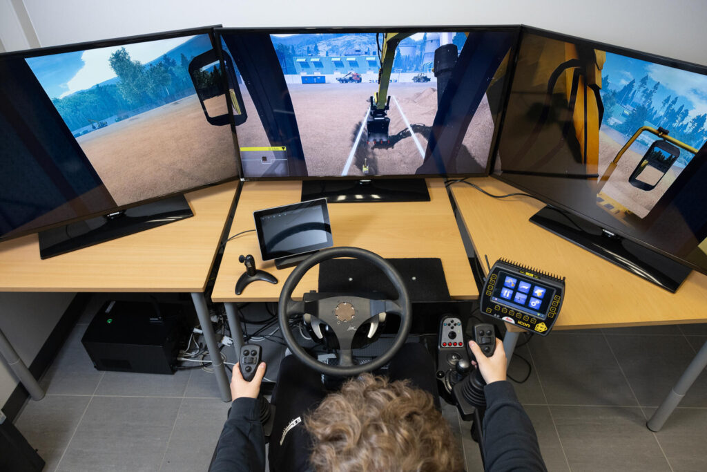 Maarakennusalan opinnoissa hyödynnetään simulaatio-oppimisympäristöä, jossa työkoneiden käyttöä harjoitellaan turvallisesti ja tehokkaasti useilla konemalleilla.