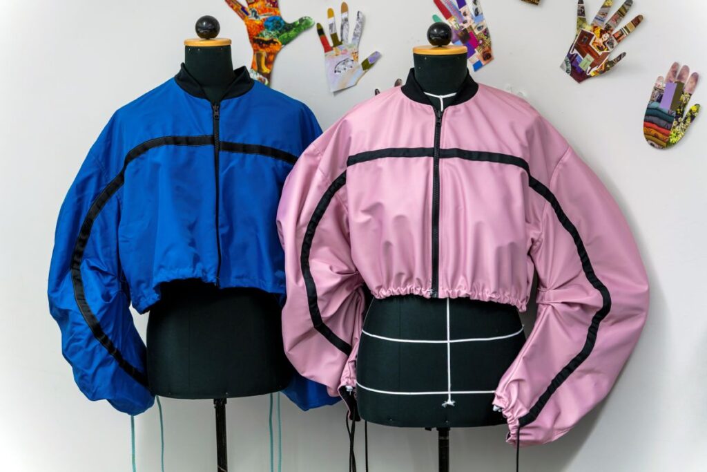 ”On ollut kivaa, kun tämä on erilaista työtä kuin normaalisti. Emme tee vain yhtä vaatetta itselle, vaan monta samaa tuotetta sarjatyönä”, hän jatkaa.