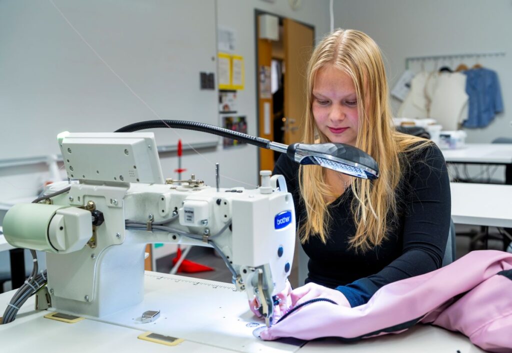 ”Opiskelijat ovat nähneet hyvin, miten kokonaisuus syntyy sarjatuotannossa: leikkuu, kaavoitus, ompelu ja se, miten yksi vaihe siirtyy seuraavalle tekijälle”, kertoo tuntiopettaja Sirpa Rautsiala.