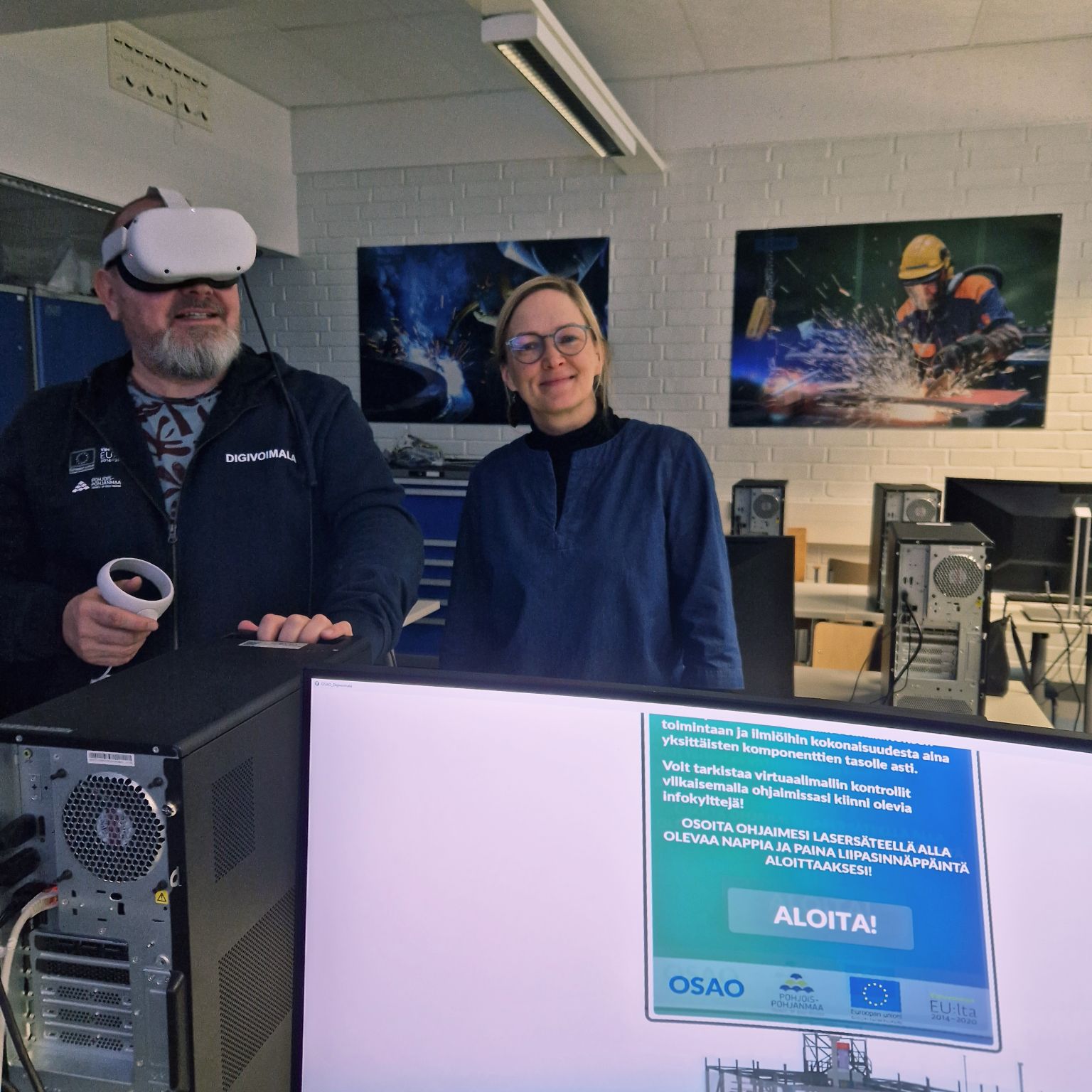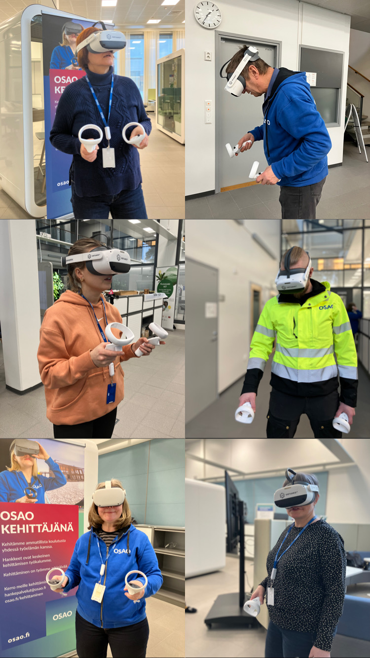 Tiesimme virtuaalitodellisuuden olevan entuudestaan monelle vielä melko tuntematon asia ja siksi näimme tärkeäksi tarjota OSAOlaisille mahdollisuuden virtuaalitodellisuuteen tutustumiseen. Niinpä toteutimme keväällä Virtuario-kiertueen: vuokrasimme Työterveyslaitoksen Virtuario-oppimisympäristön ja kiersimme sen kanssa kaikki OSAOn yksiköt niin, että oppimisympäristö oli kussakin yksikössä viikon ajan kokeiltavissa. Tuon viikon aikana kaikki halukkaat pääsivät opastetusti testaamaan VR-laseja ja -sisältöjä sekä jakamaan kokemuksiaan ja ideoitaan.