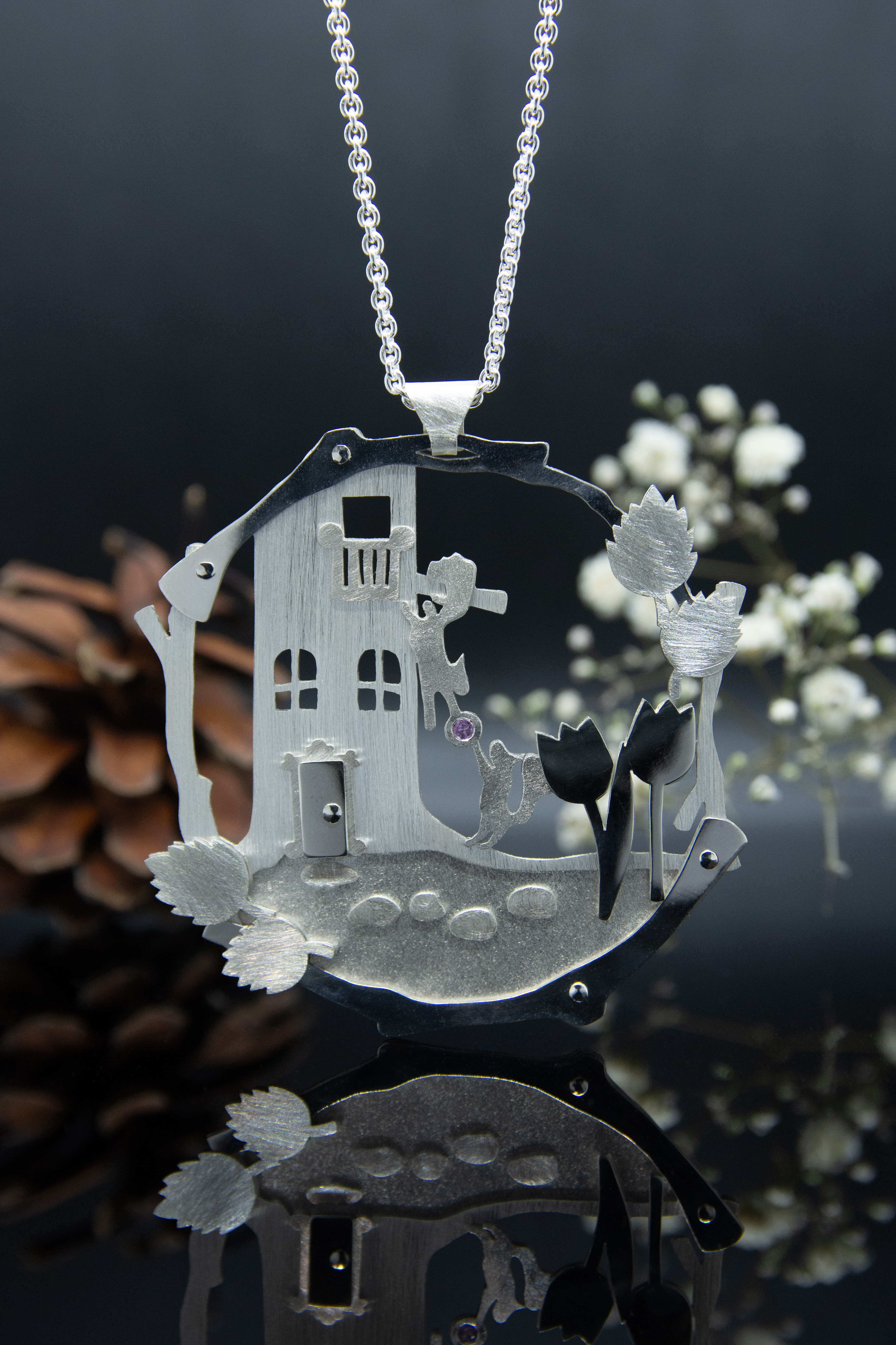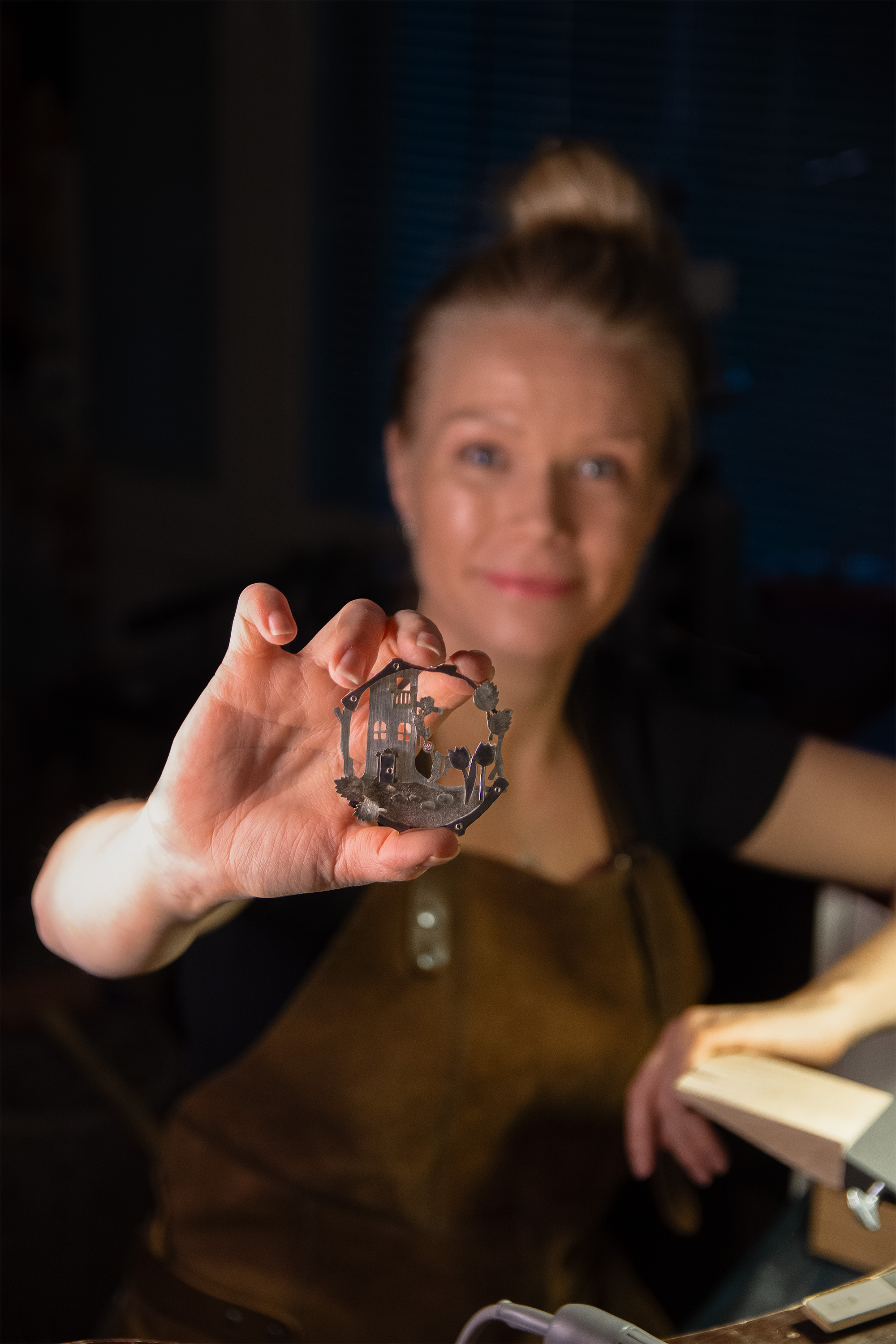 “Satumetsän tarina heräsi eloon, kun opettelin koulussa korujen suunnittelua ja erilaisia valmistusmenetelmiä.”