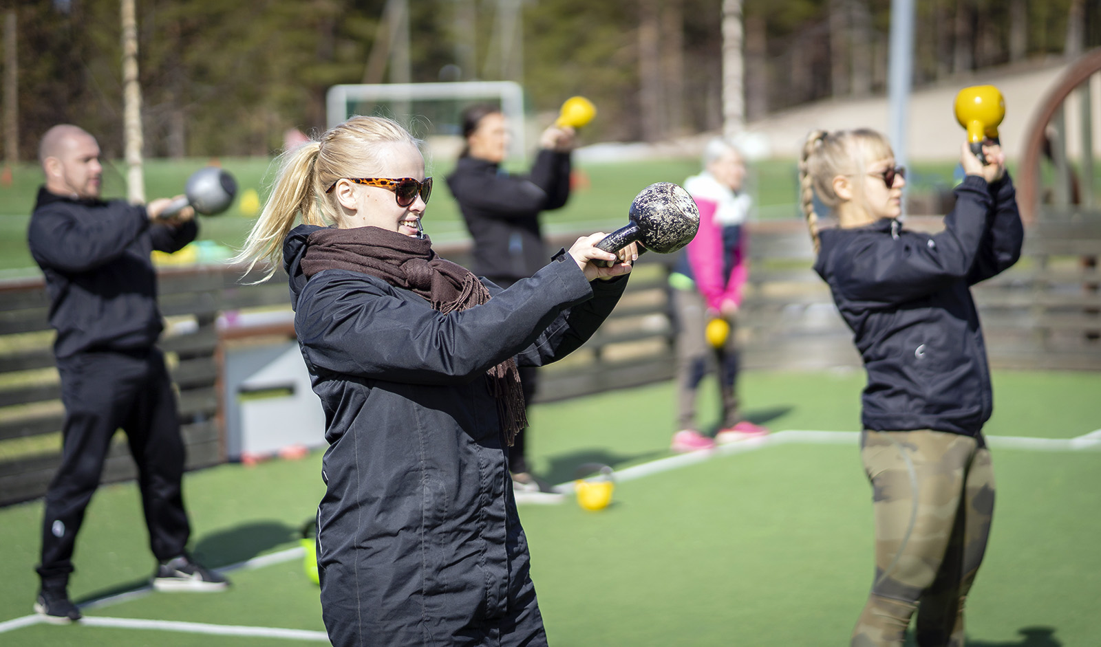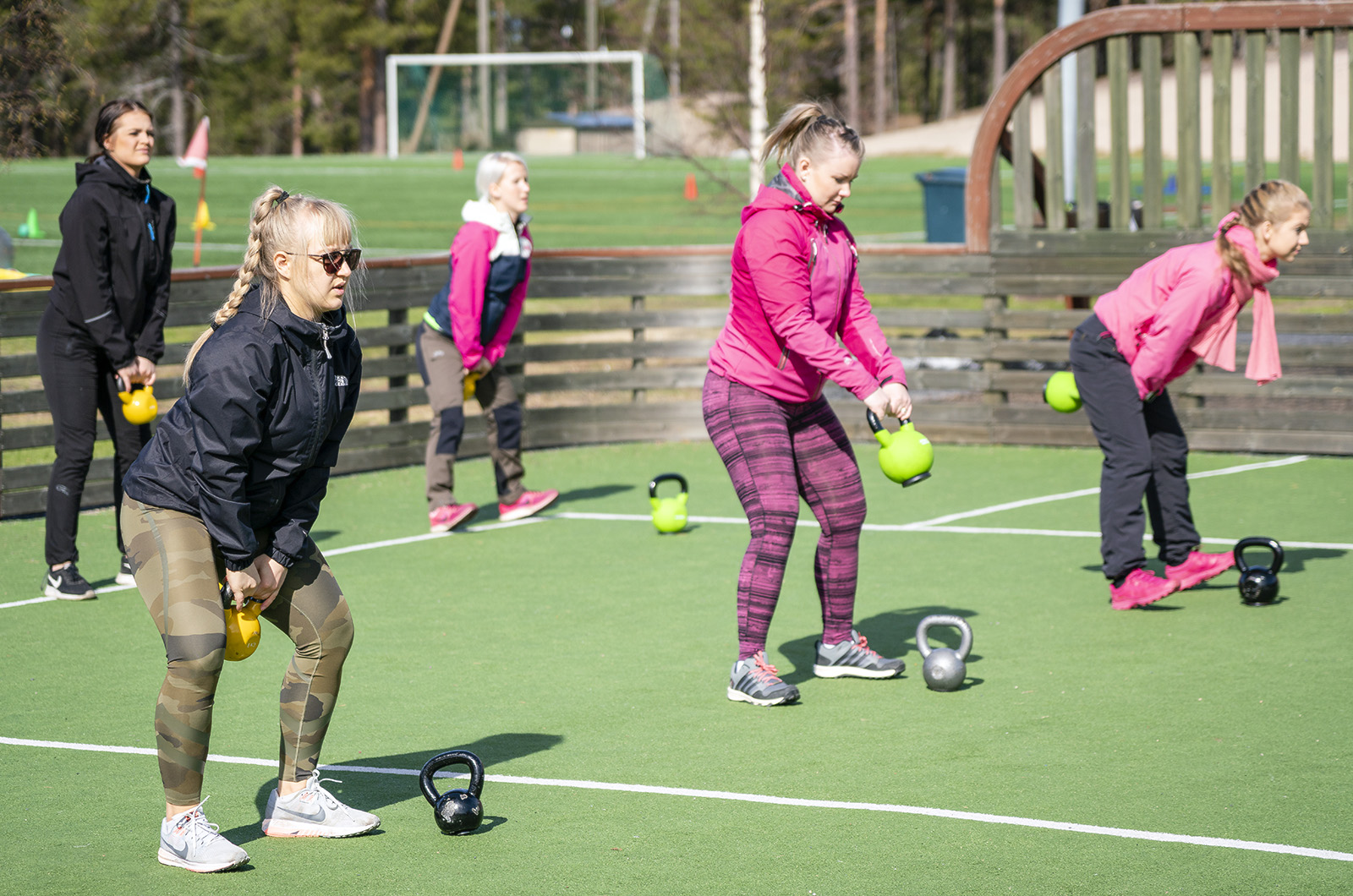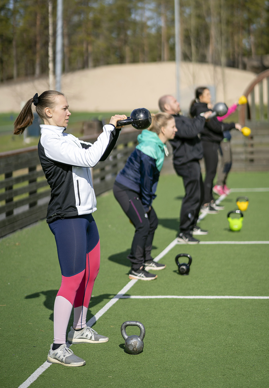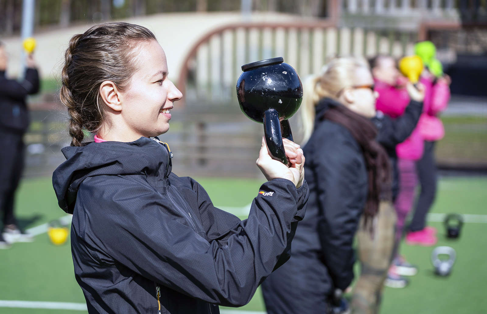 Kahvakuulailu sisältää välineet, tilat ja kahvakuulakokeilun liikunnanohjaajan vetämänä.