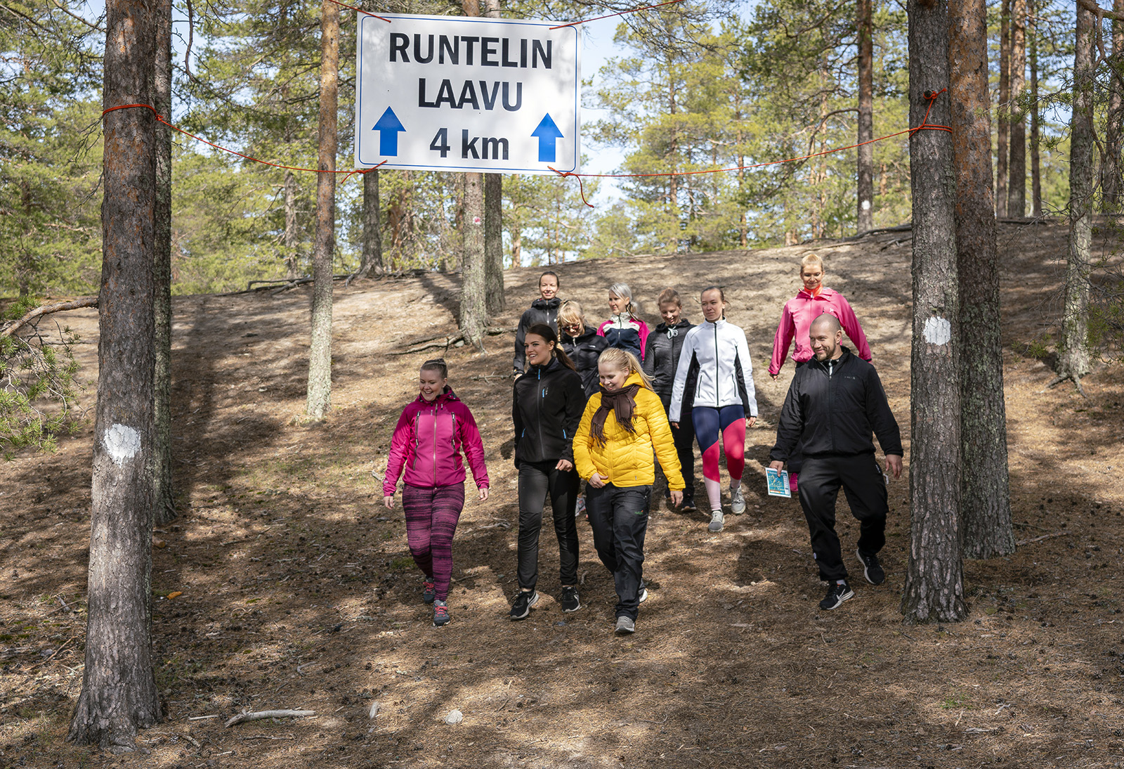 Vaellus Runtelinharjulle sisältää ohjatun kävelyretken ja mahdollisiin tiimitehtäviin tarvittavat välineet liikunnanohjaajan vetämänä.